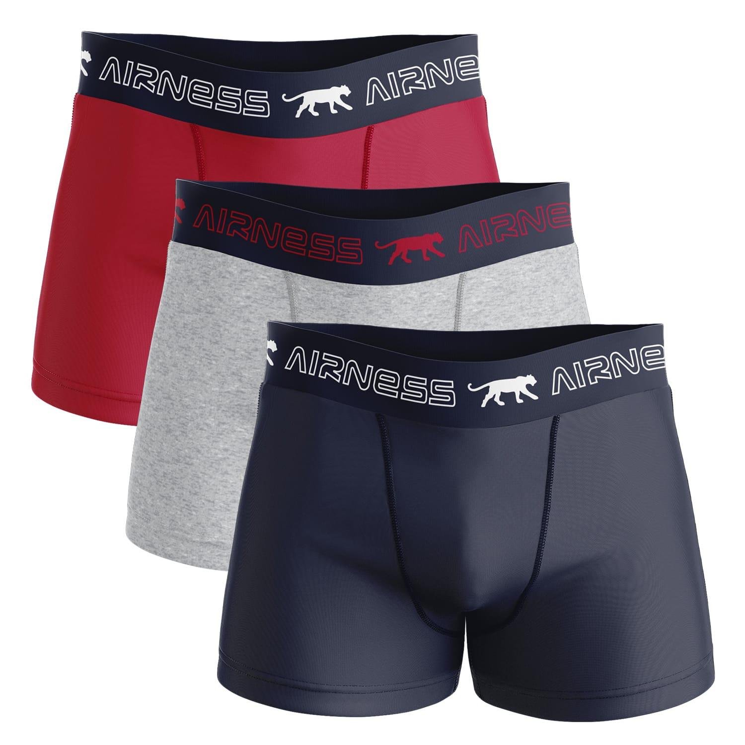 Ce lot de 3 boxers est en coton élasthanne avec une taille élastiquée. Ce lot est composé d’un rouge, d’un gris chiné et d’un marine.